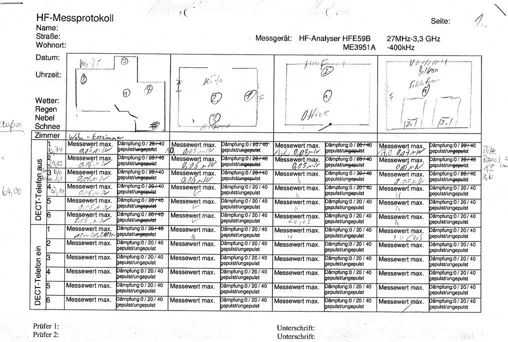 Nach der Messung erhalten Sie ein Meßprotokoll. Wir zeigen Ihnen, sofern vorhanden, die lokalen Strahlenquellen und